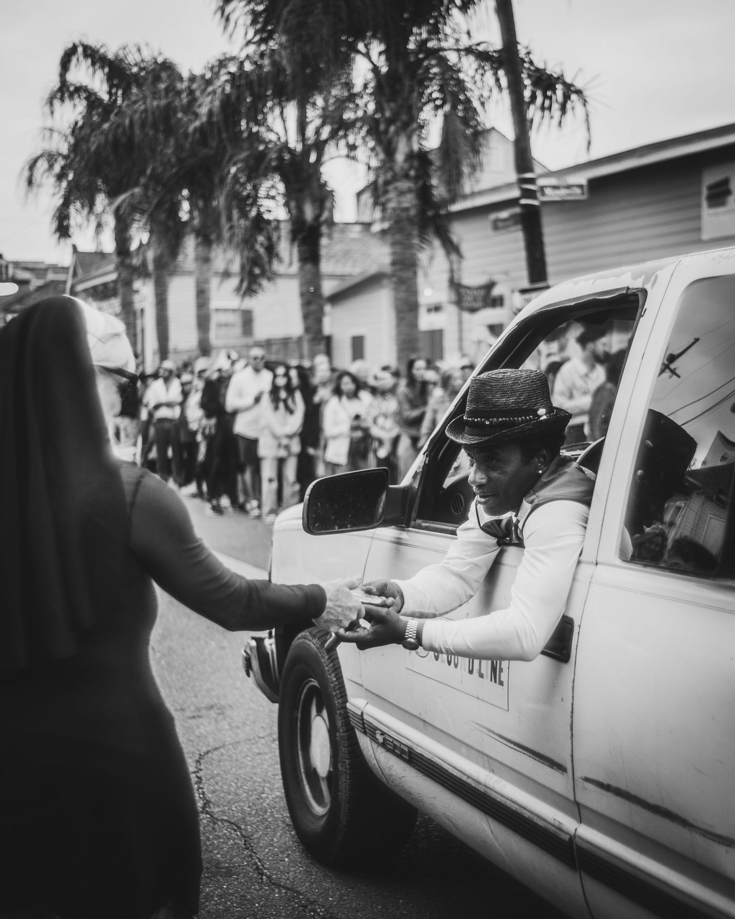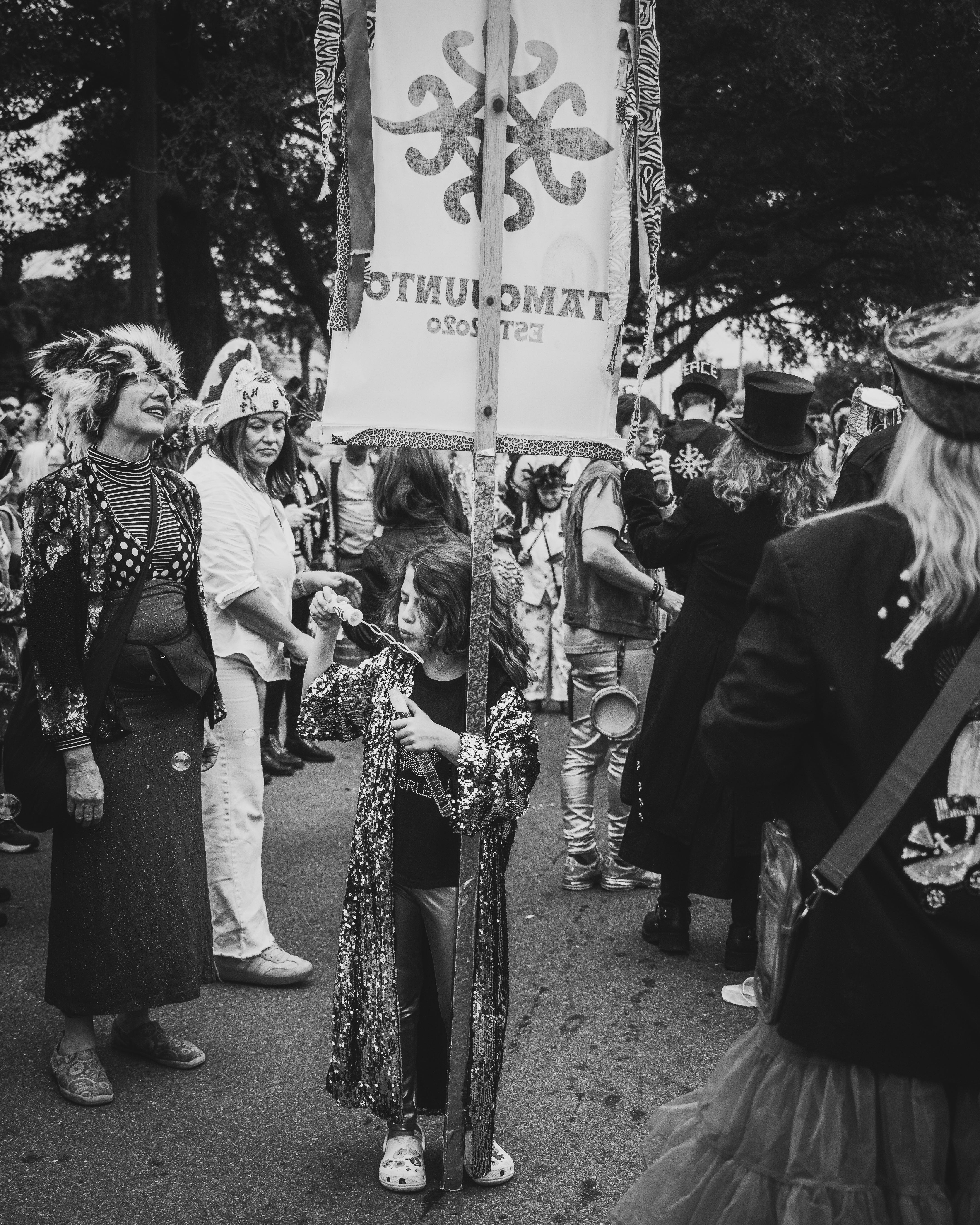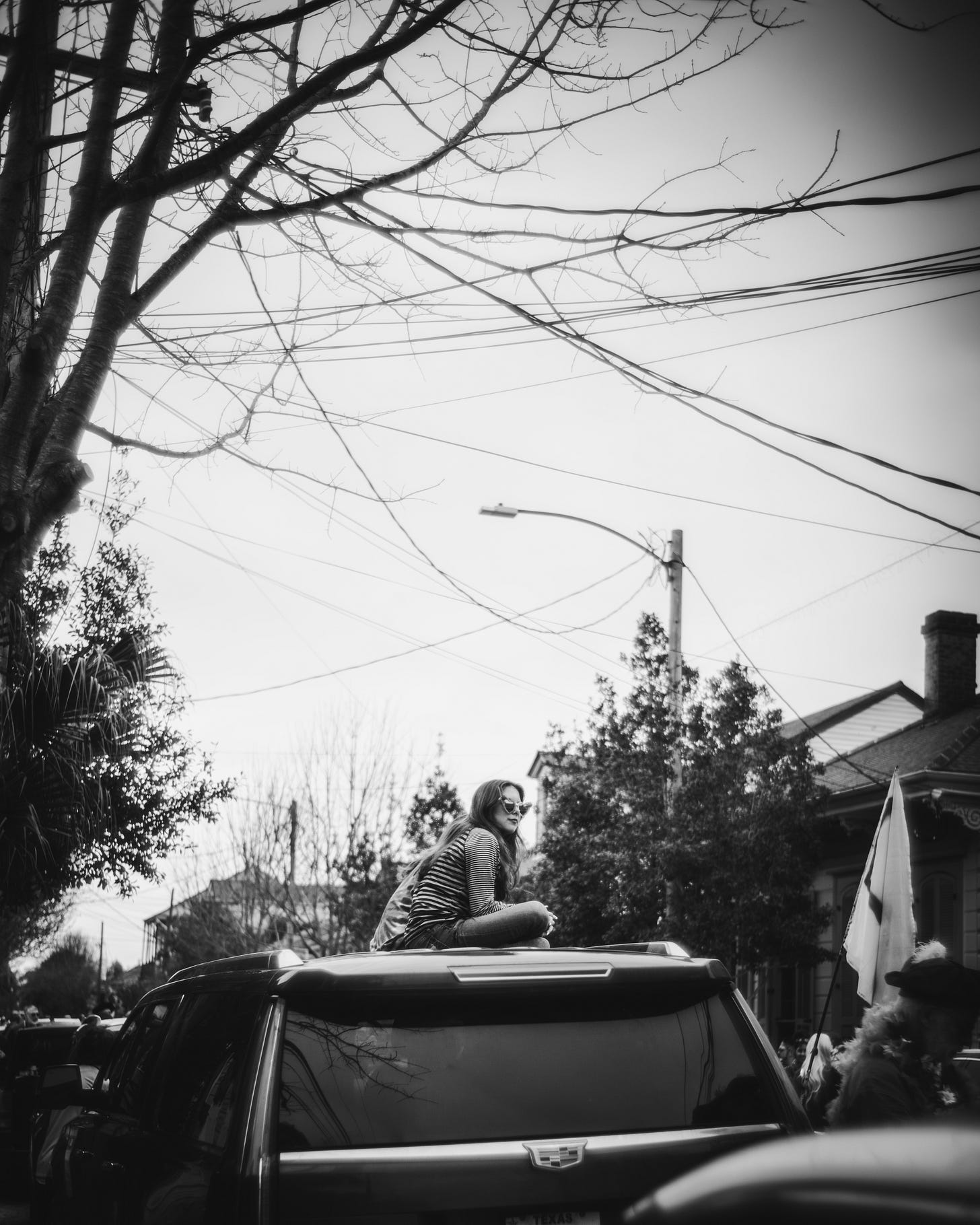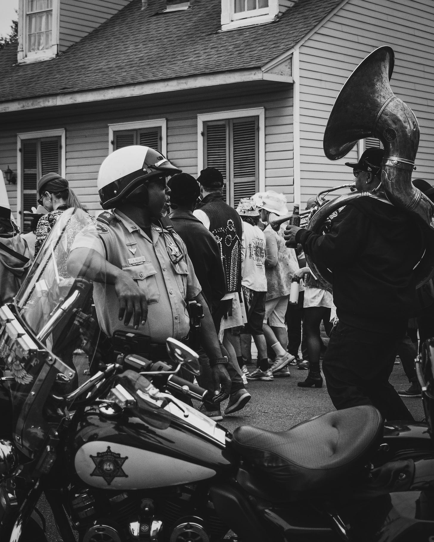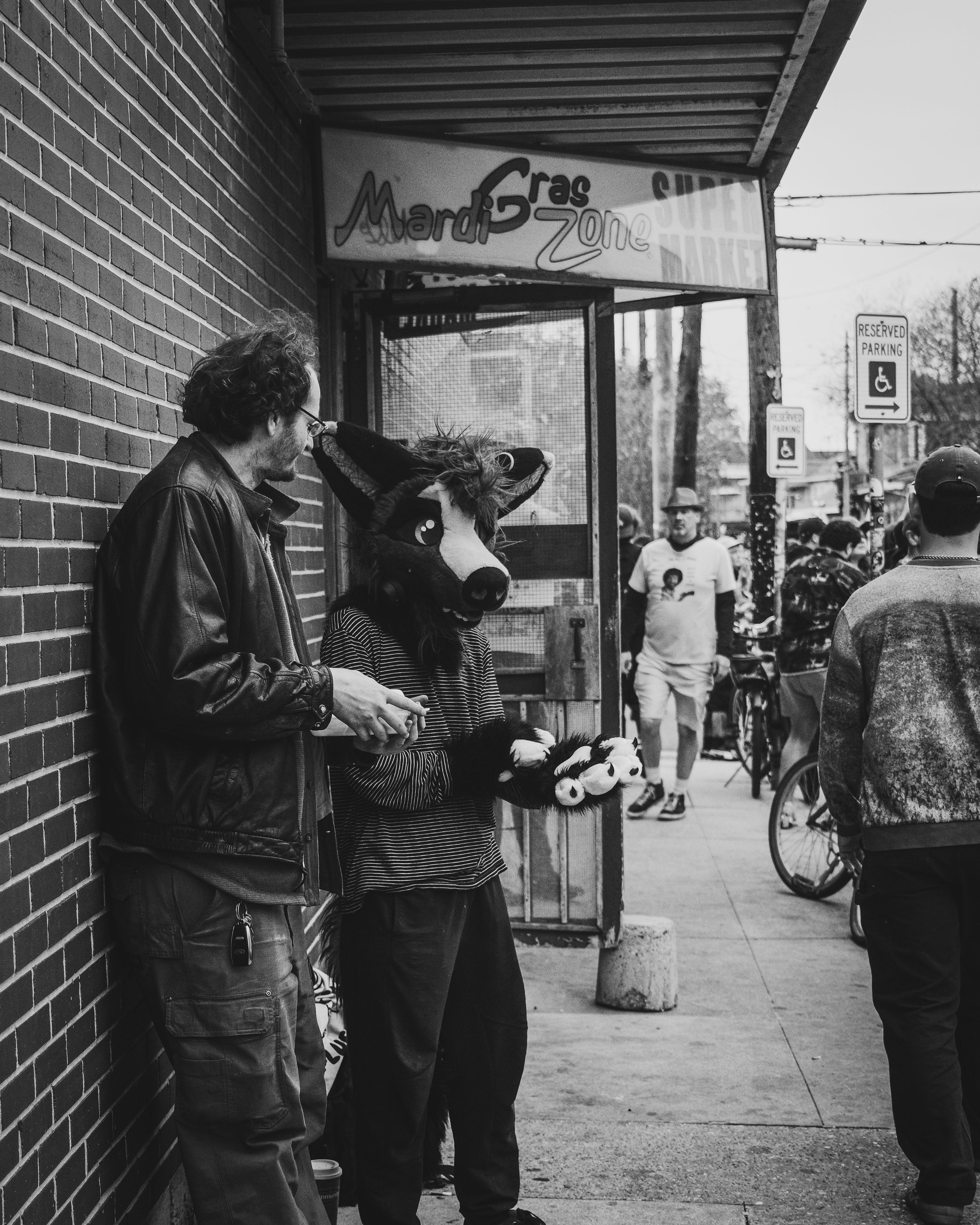 As I make my way through any parade crowd, I find myself pulling focus away from the parade itself. For the most part, I find other photographers already have capturing that creativity well handled. What I try to find is on the fray - the scenic happenstance that comes from just being around the celebration. In this case, the downtown neighborhoods of the Bywater and Marginy did not disappoint, as the parade made its way down Royal St.